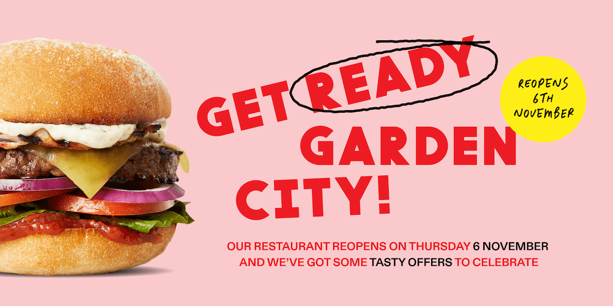 On reopening day, the first 754 burgers are on us. First in, best dressed. Tell us if you’re coming down, then tell a friend to tell a friend.