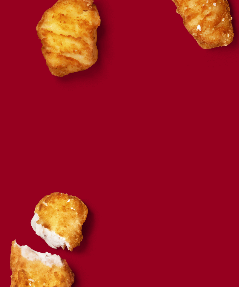This is an easy one. 100% Australian RSPCA Approved chicken, every time. Each nugget is perfectly imperfect because it’s a whole, handcut chicken piece.